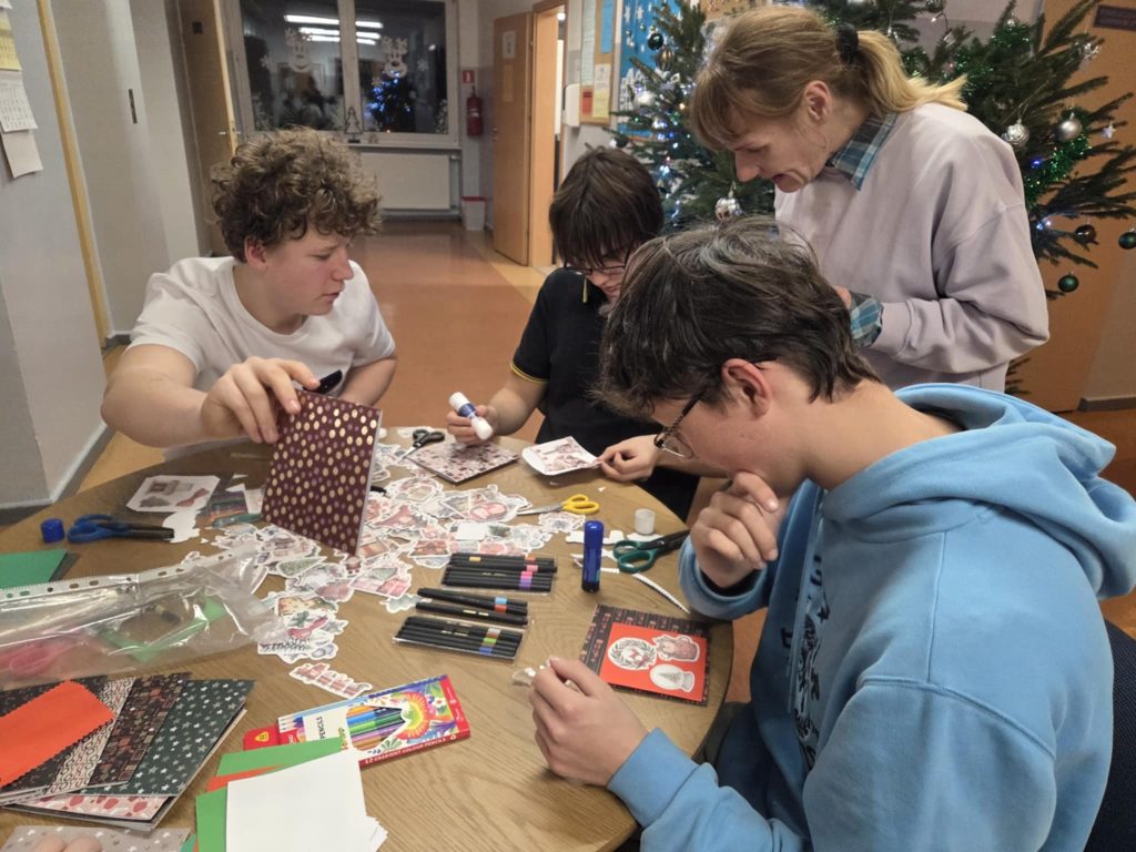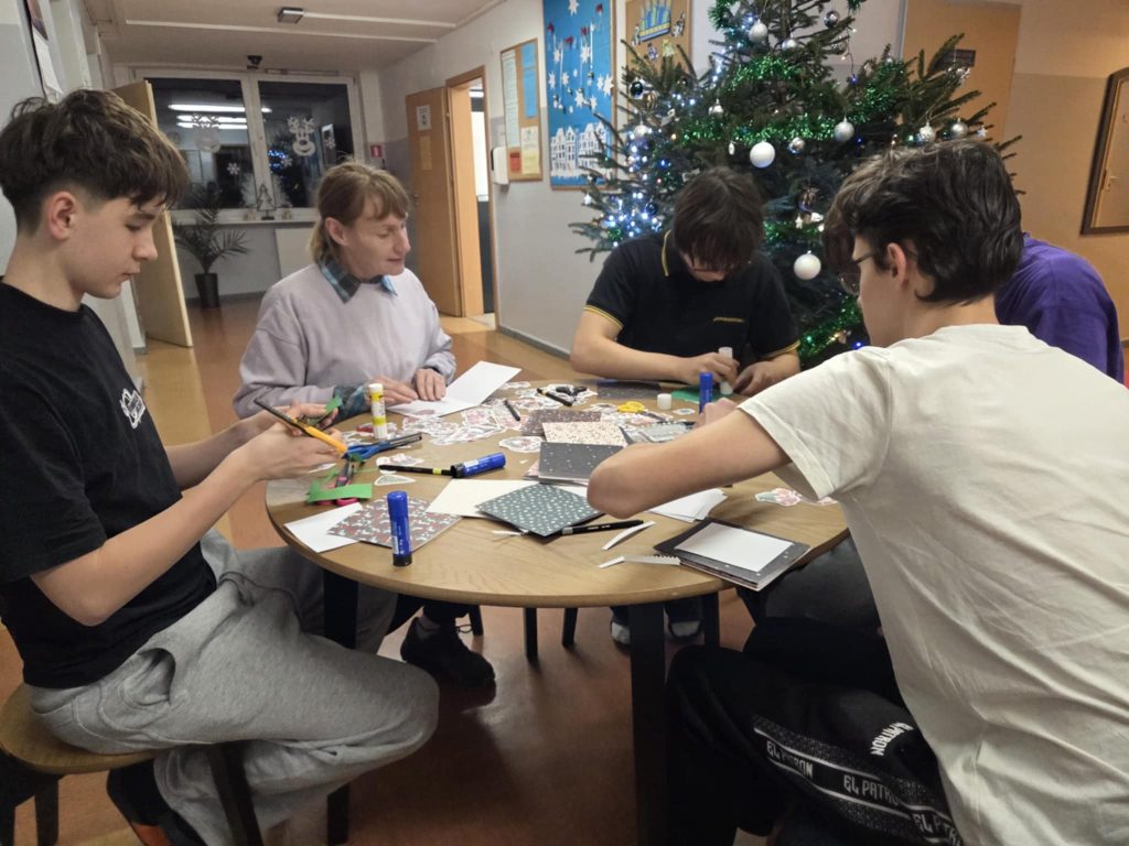 Czas Adwentu to okres wyjątkowego oczekiwania – chwil, w których codzienność przeplata się z ciepłem domowej atmosfery i narastającą radością z nadchodzących świąt. Aby poczuć świąteczną atmosferę w internacie, młodzież udała się po choinkę, która ubrana rozświetliła korytarze blaskiem lampek. Z dużym skupieniu stworzyli własnoręczne kartki świąteczne, które wypełnili ciepłymi życzeniami i kreatywnością. Zostaną one wkrótce przekazane do naszej szkoły oraz zaprzyjaźnionych z nami internatów.